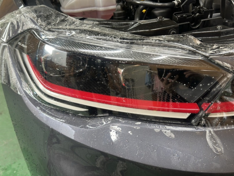 ヘッドライトを洗浄後、プロテクションフィルムを貼って行きます!