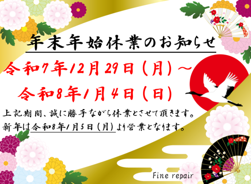 年末年始休業のお知らせです!